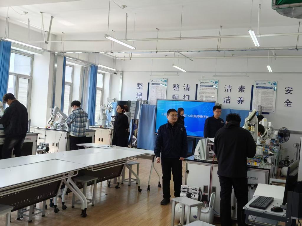 2025年4月25日-2025年4月26日,工业机器人应用编程“1+X”职业技能等级证书考核工作在工匠楼502、513室举行。本次考核分为理论考试、实操考试两部分,来自工业机器人技术专业共49名学生参加了此次初级考核,通过率96%。