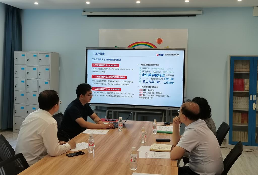 6月17日,工信部中国工业互联网研究院数字人才基地建设工作负责人李佳腾高工来我院对接“工业互联网产教融合实践中心(以下简称中心)”和“数字技术工程师培育项目工业互联网程技术人员考核站(以下简称考核站)”建设工作,分院院长李子峰,副院长鲍敏,物联网应用技术教研室主任陈天凯以及相关企业专家参加对接会。