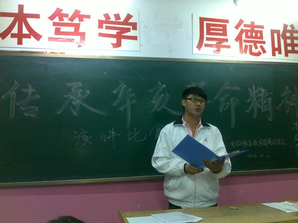 2011年10月10日电气信息技术学院为纪念辛亥革命100周年,举行了演讲比赛。此次比赛以辛亥革命为背景,以“秉承辛亥革命精神”主题。赛场上同学们各展风采、各施所长,用自己特有的语言魅力和对辛亥革命的认识及意义折服了现场评委以及观赛的同学们。最后,经过3天的激烈角逐最后由电气二班高毅同学夺得冠军。