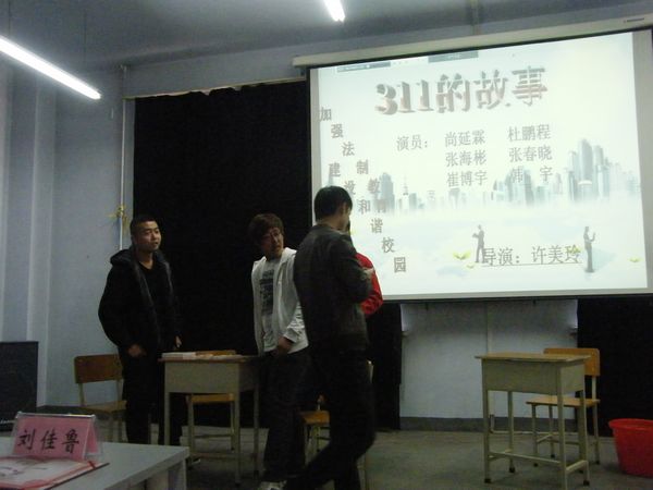 本次小品大赛的参赛作品全部由电气与信息技术学院2011级学生自编、自导、自演,创作主题都是来源于广大学生身边人、身边事,特别贴近大学生的生活,容易被学生们接受,能够使同学们在观看小品时在阵阵欢笑声中不知不觉的接受教育。最后,经过学生处、团委的评委老师孙若鹏、吴弢、唐晓恬、赵戌秋一致推荐,来自2011级机电一体化班的小品《311的故事》荣获本次大赛一等奖。