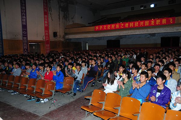 新生2012级机电1班的周松雪也代表全体新生表了决心,在大学三年里要不断完善自己,充实自己,武装自己,请老师和家长放心。定会做个对社会有用的人。