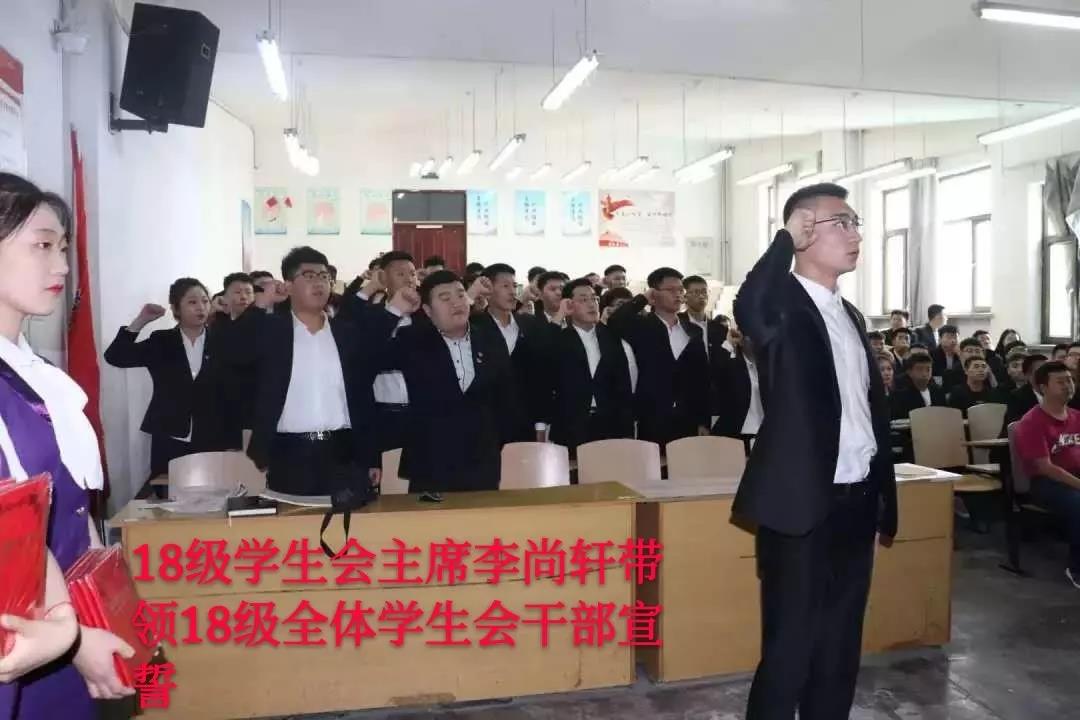 随后18级学生会主席李尚轩带领18级全体学生会干部宣誓。