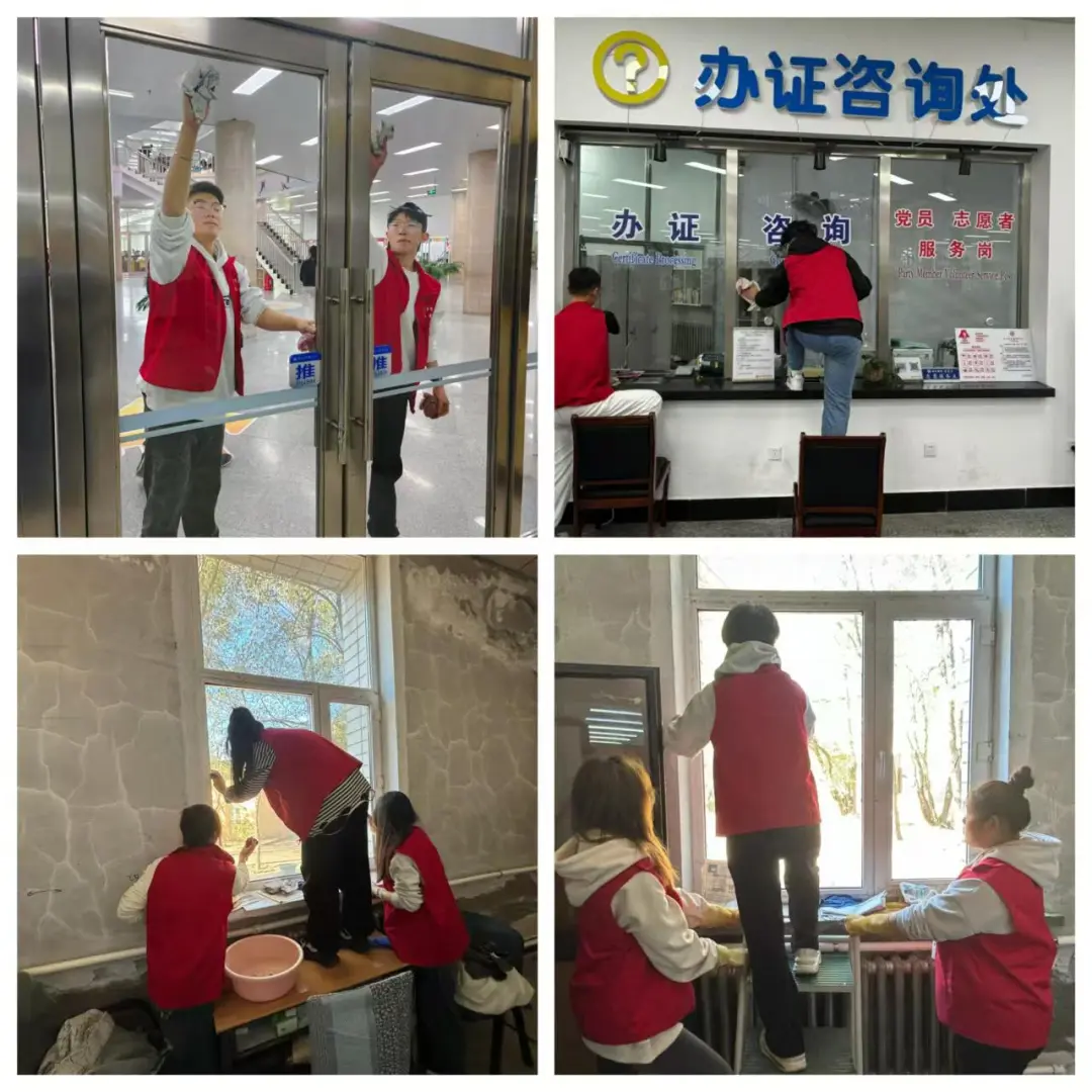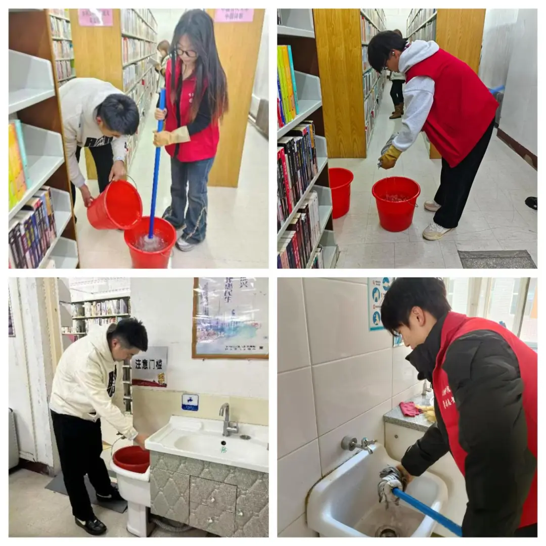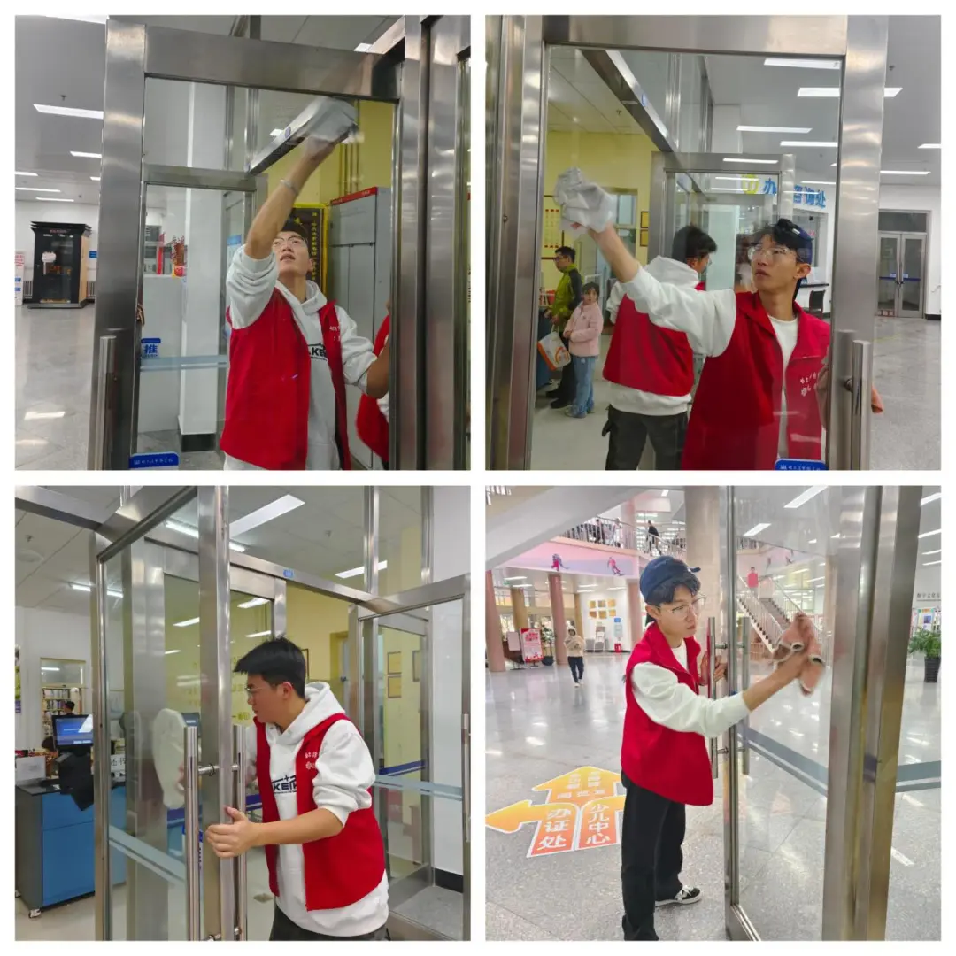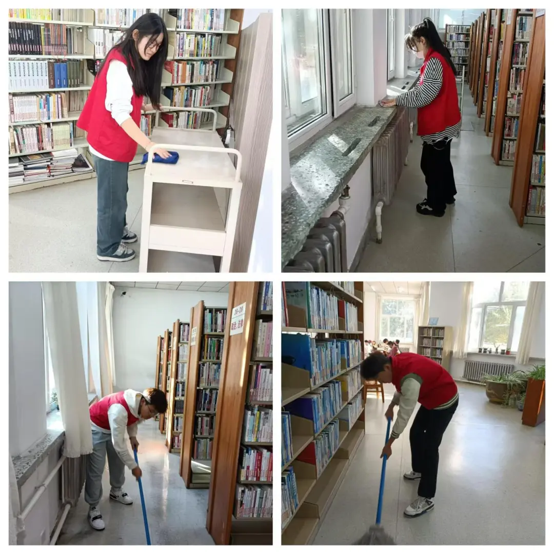志愿服务期间,在管理员的带领下,志愿者们迅速投入到各自的岗位中,他们擦拭窗台,整理图书,清理地面。清理过程中,志愿者们展现出了高度的责任感和团队合作精神。他们认真细致地完成每一项任务,不仅为读者提供了便利,也为图书馆营造了一个更加舒适、整洁的阅读环境。