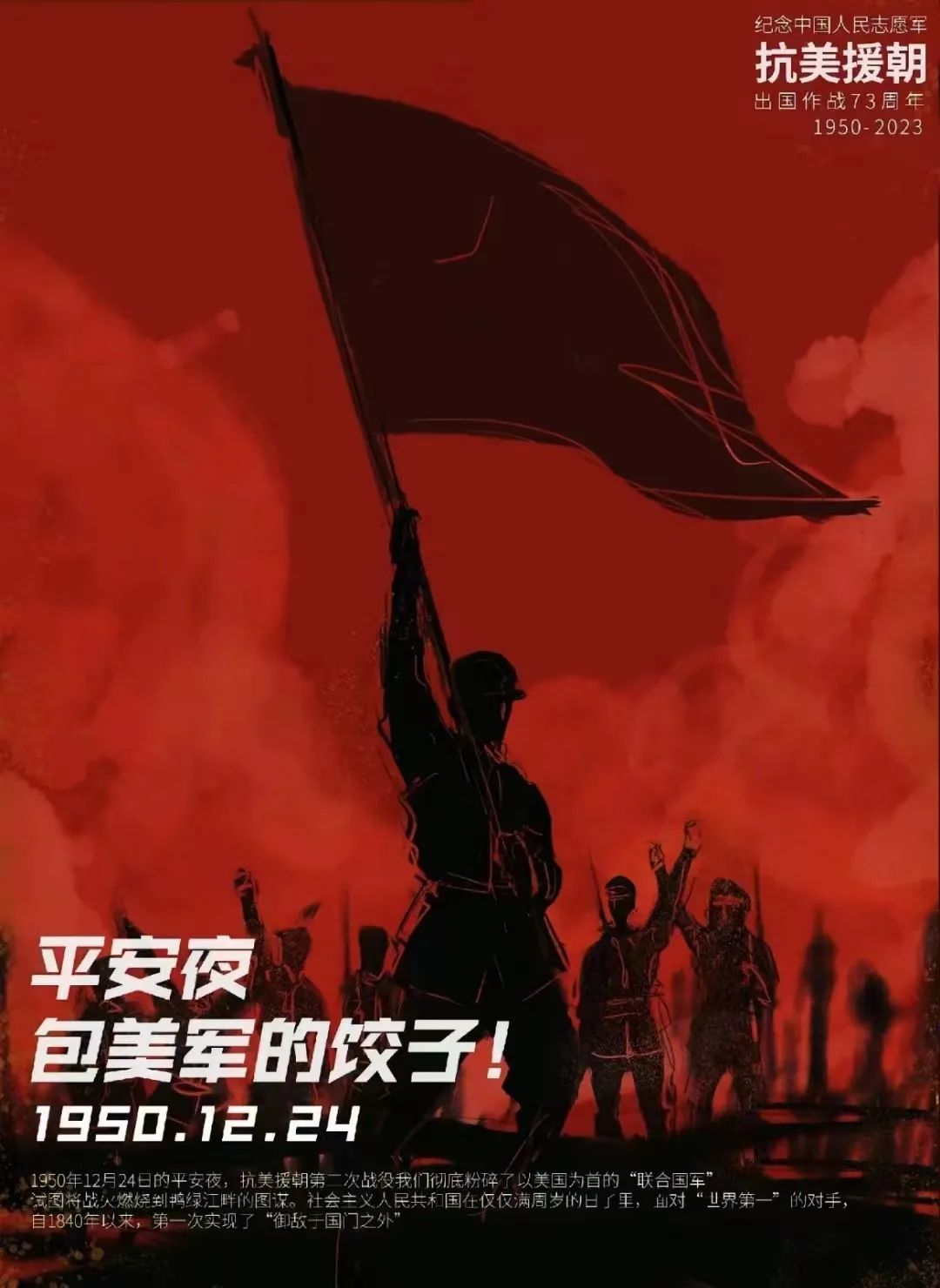 这是1950年12月24日。当日,第二次战役结束,“联合国军”死伤和被俘3.6万,其中美军2.4万。