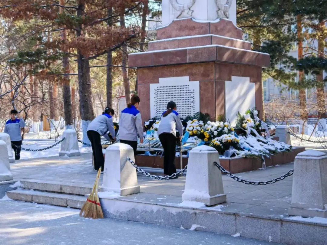 日组织开展哈尔滨市烈士陵园祭扫活动。我院党总支副书记李焕然带领