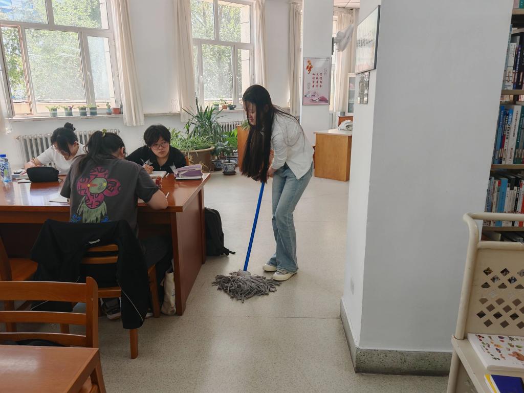 在志愿服务活动中,志愿者们热情高涨,手脚麻利,始终保持专注投入的状态,凭借高效执行力迅速推进工作。他们认真细致地擦拭场馆每一处角落,不仅将书架表面的灰尘清理得干干净净,还按照分类编码将图书整齐排列,让整个场馆面貌焕然一新 。