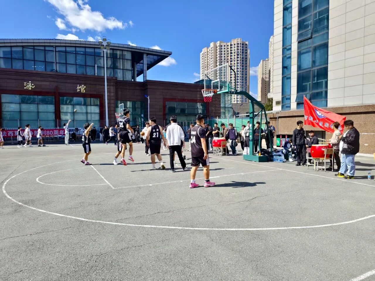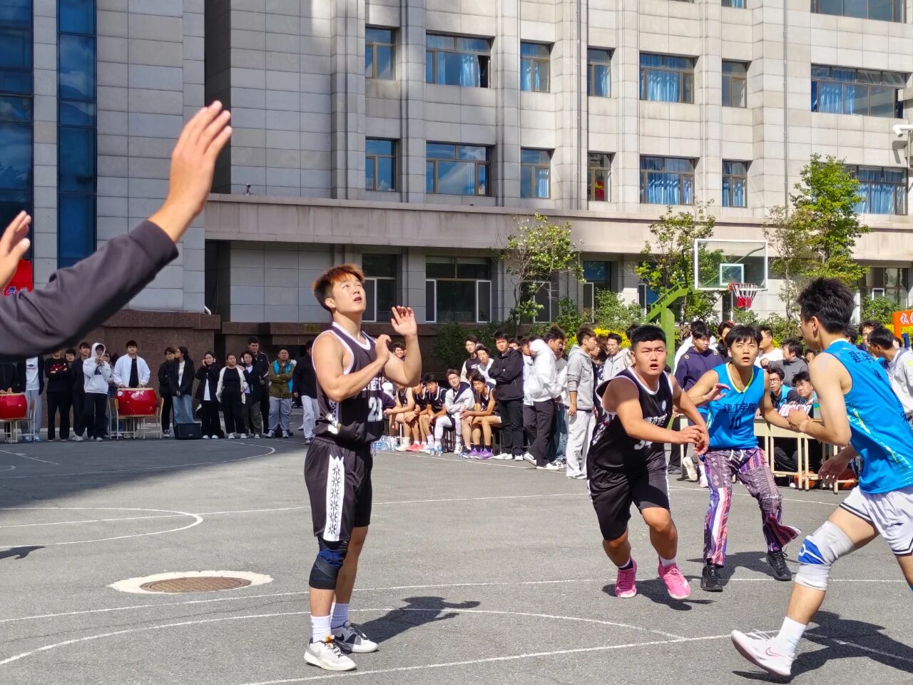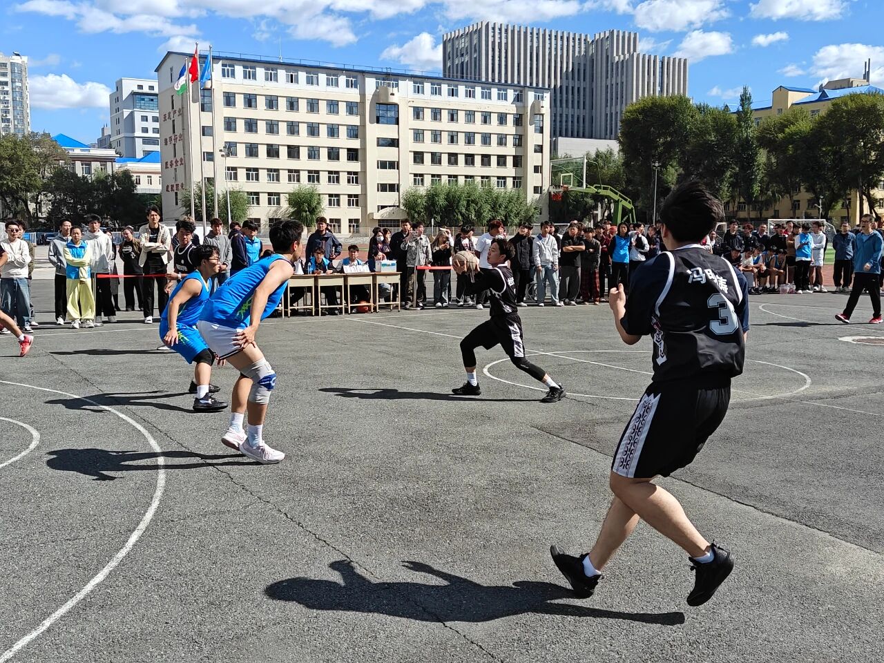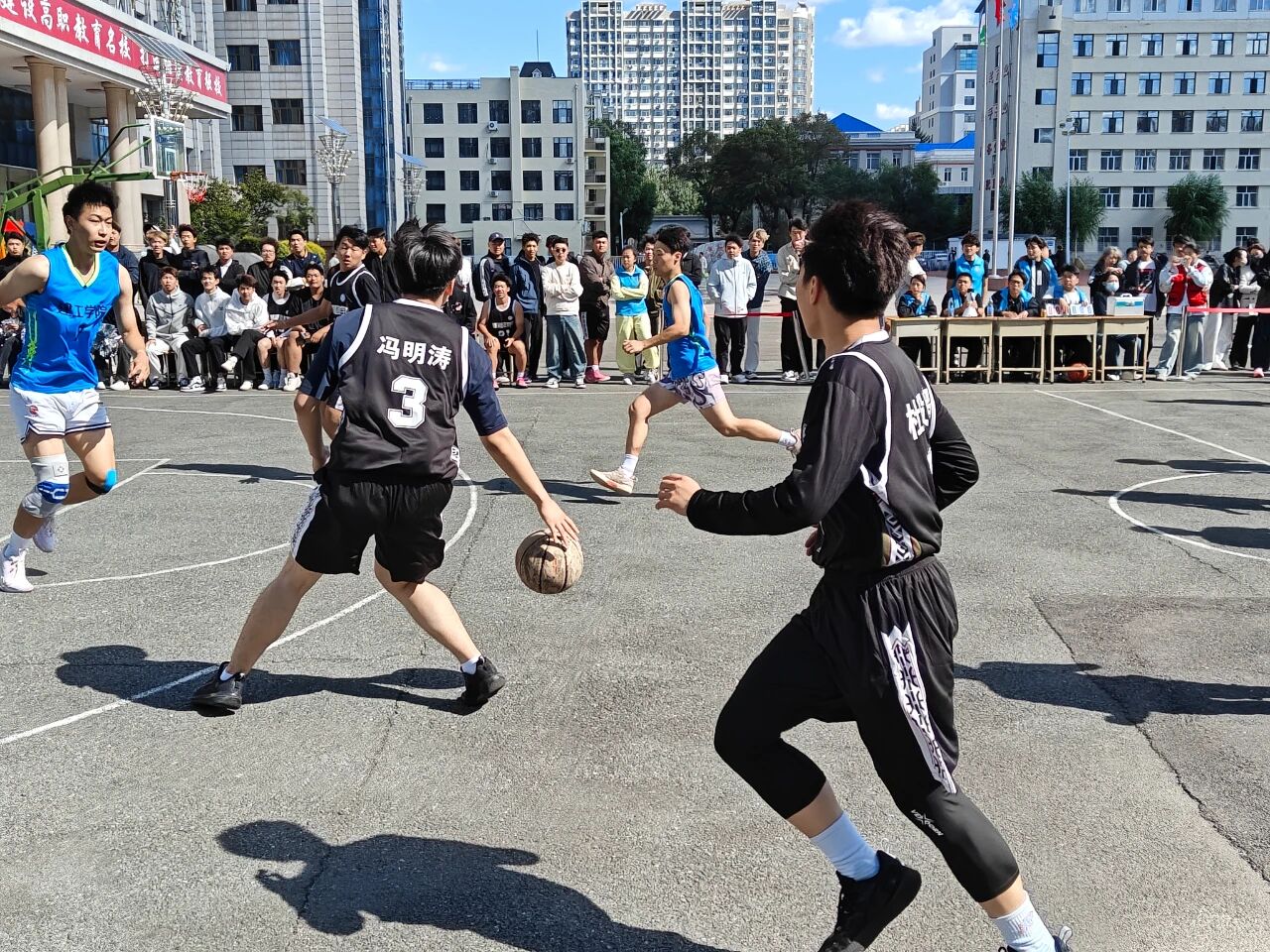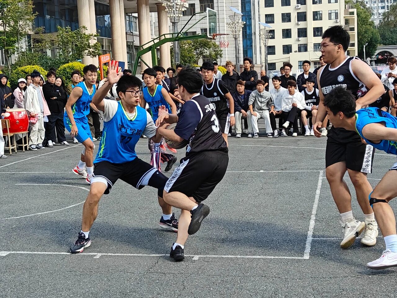 比赛哨声响起的瞬间,赛场便成了智能制造技术学院队员们的 “战场”。面对强劲对手,队员们丝毫没有怯意,凭借扎实的篮球功底与蓬勃的朝气,迅速投入到激烈对抗中。持球突破时,他们眼神坚定,灵活避开防守;队友传球时,他们心有灵犀,默契跑位创造机会;跃起投篮时,他们全力以赴,每一个动作都凝聚着对篮球的热爱与对团队的责任。