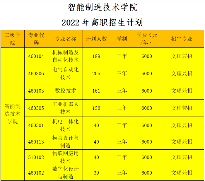 2022年高职招生计划