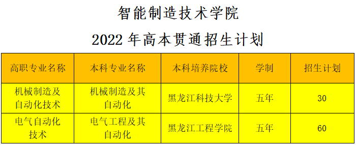 ⭐黑龙江省”3+2高职本科贯通“试点专业(机械制造及自动化、电气自动化技术)