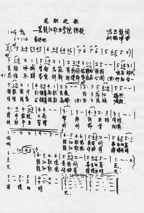 龙职之歌——KY开元集团官网入口校歌,词作者:冯玉龙,学院党委书记;曲作者:刘锡津,中国民族管弦乐学会会长,全国政协委员,原黑龙江歌舞剧院院长、省文化厅副厅长、中央歌剧院院长。