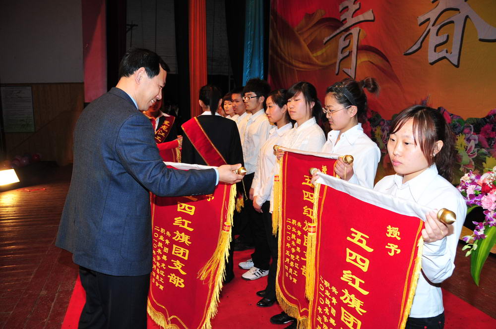 会上,院团委书记张雨薇同志、学工处处长孙革新同志分别宣读了《关于“五四红旗团支部”的表彰决定》和《关于“五四青年标兵”的表彰决定》。赵继会院长为获得“五四红旗团支部”的先进集体颁发了荣誉锦旗,张玉山副书记、郑福贵副院长为获得“五四青年标兵”的团员青年颁发了荣誉奖杯。