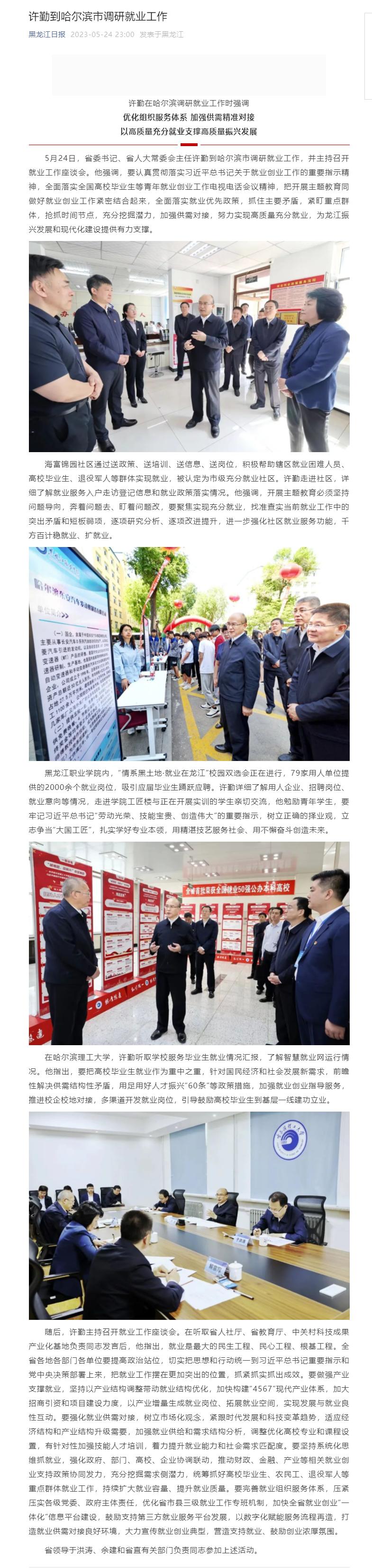 【黑龙江日报】许勤到哈尔滨市调研就业工作