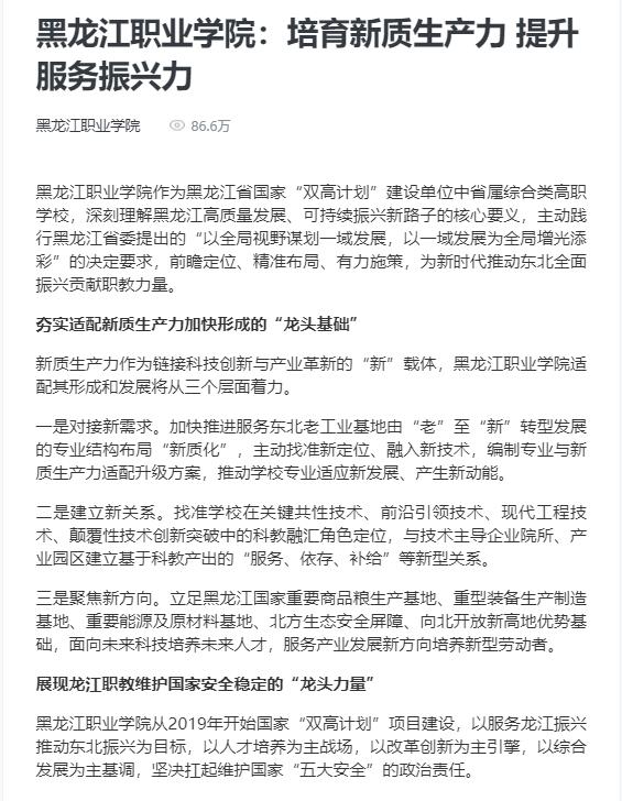 下一篇:【新华社黑龙江频道】KY开元集团官网入口依托国家智慧教育公共服务平台创新“一核三线六精神”育人模式