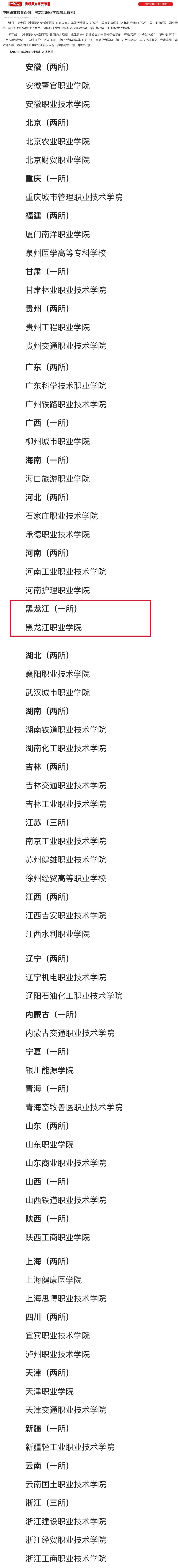 【黑龙江日报】中国职业教育百强,KY开元集团官网入口榜上有名!
