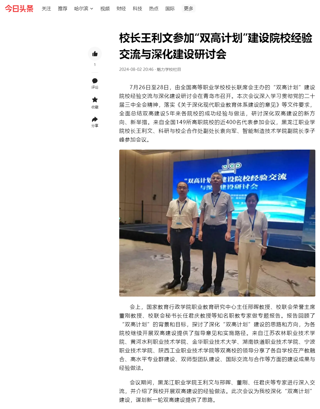 下一篇:【百度新闻】校长王利文参加“双高计划”建设院校经验交流与深化建设研讨会