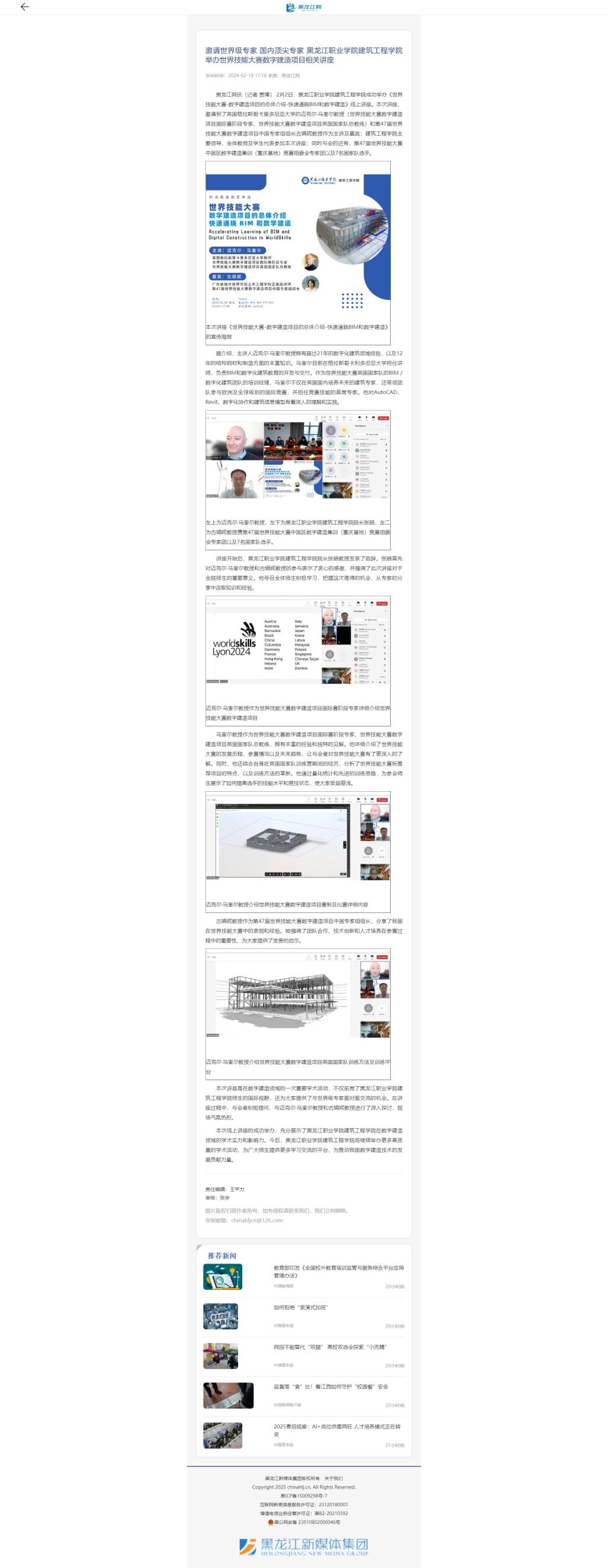 【黑龙江网】邀请世界级专家 国内顶尖专家 KY开元集团官网入口建筑工程学院举办世界技能大赛数字建造项目相关讲座