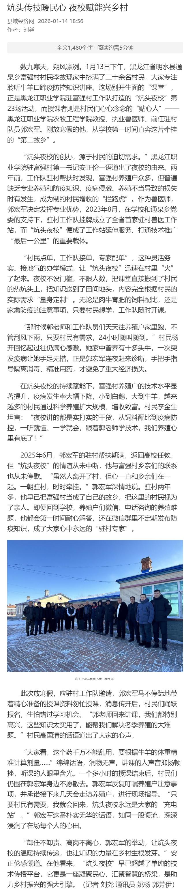 【中国食品报】黑龙江明水县:炕头传技暖民心 夜校赋能兴乡村