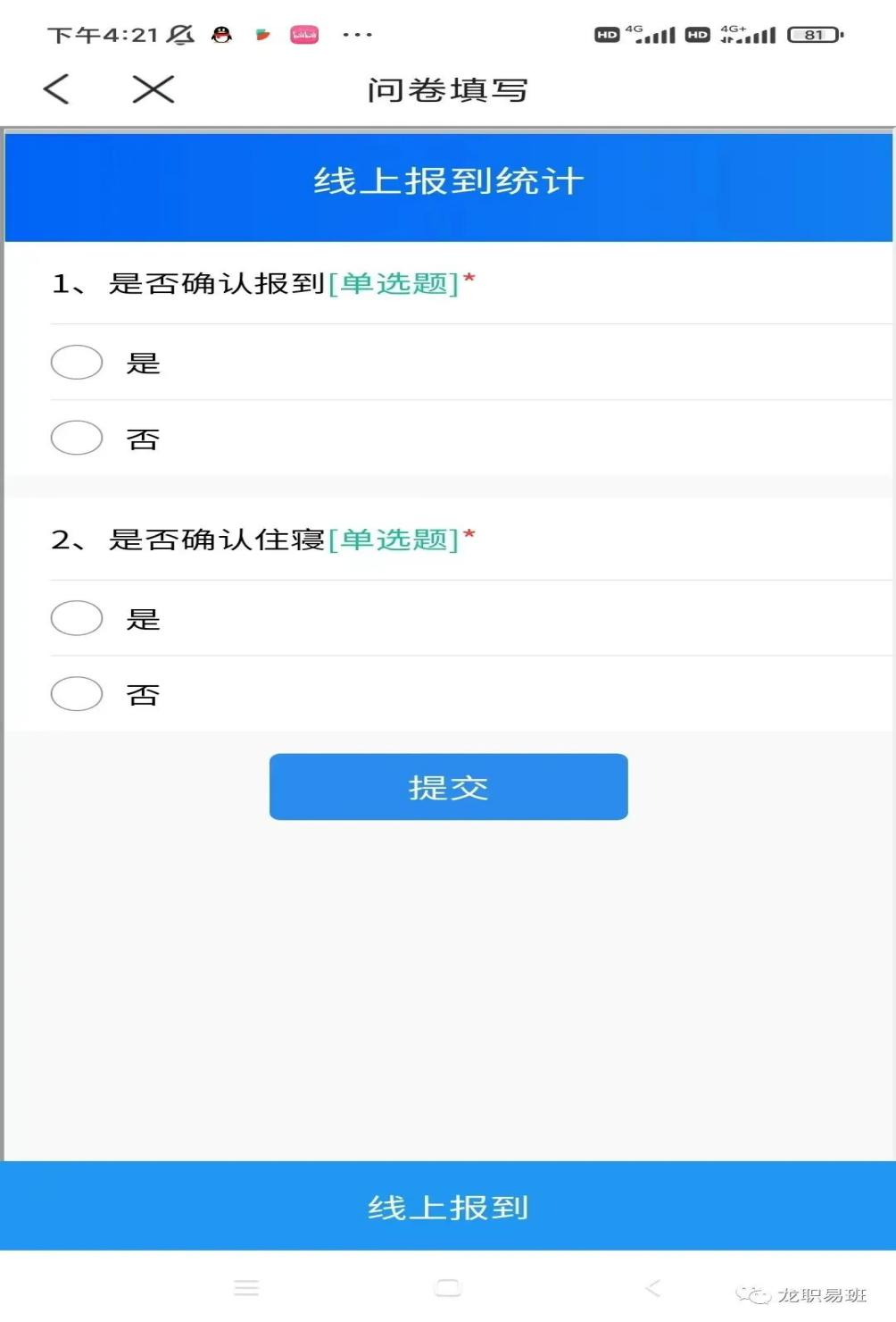 请同学们根据实际情况填写相关问题,点击“提交”完成线上报到。