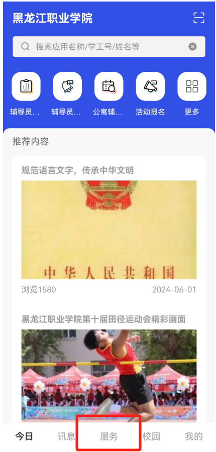 2025级新生同学在登录后进入个人页面后点击下方“服务”按钮,首次登陆时“服务”中的应用列表需要10-30秒的预加载时间,还请耐心等待。