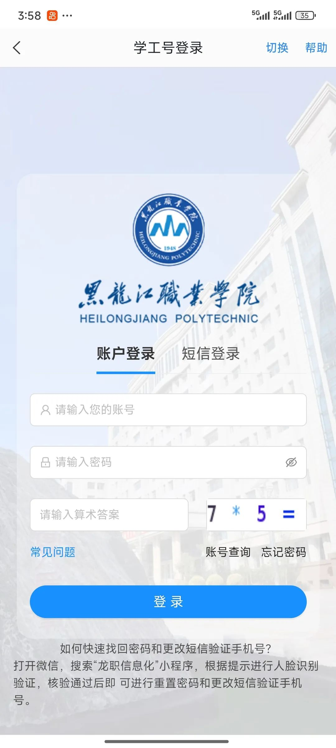 进入学工号登录页面;