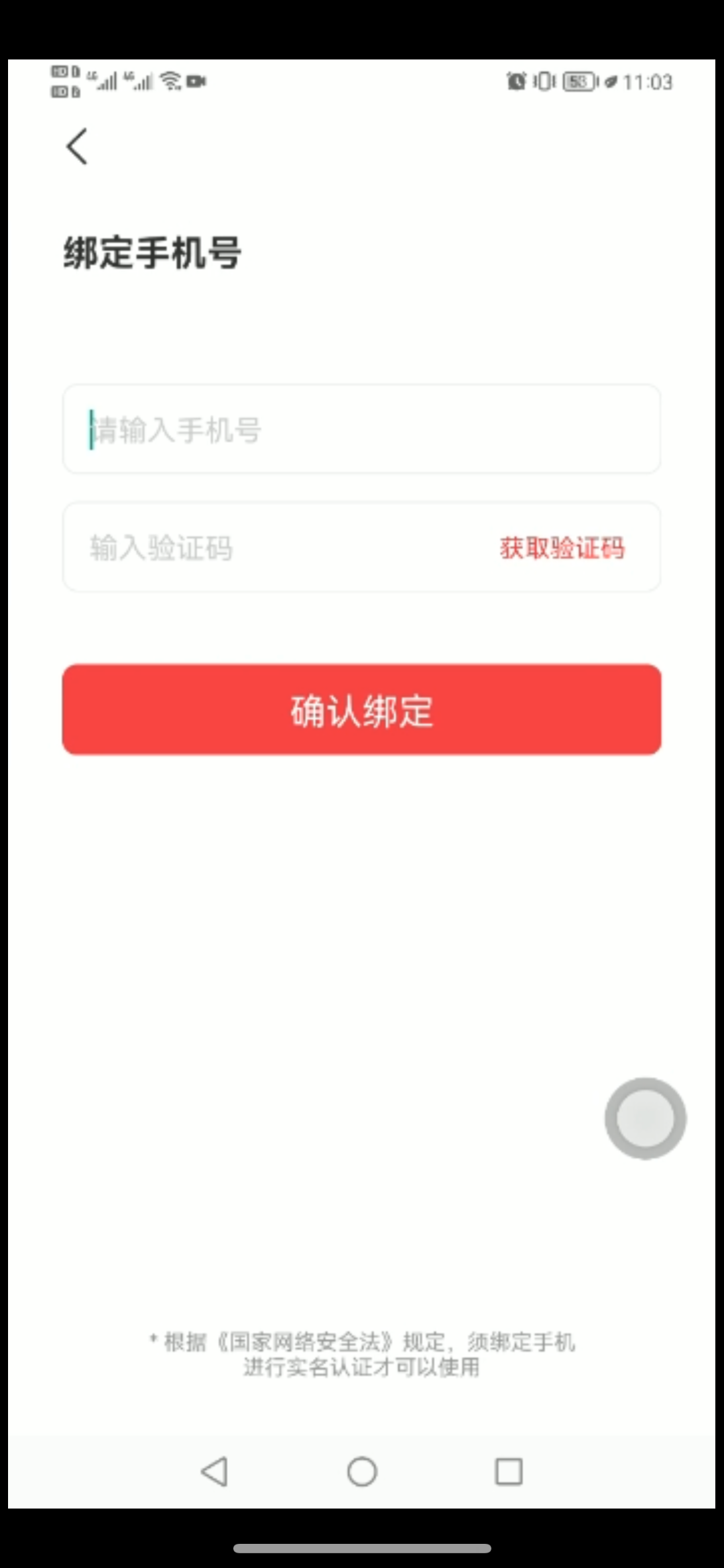 登录后,进入“绑定手机号”界面。