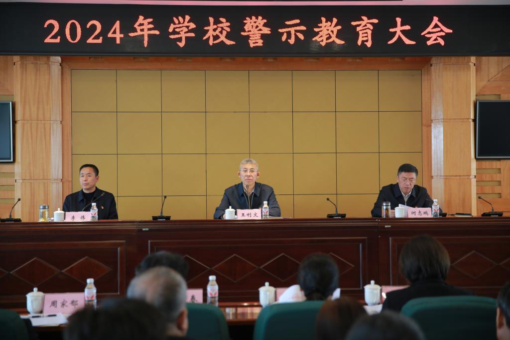 为贯彻2024年全省教育系统全面从严治党暨巡视整改工作推进会议精神,落实全面从严治党主体责任和巡视整改任务,推动警示教育常态化,学校党委于4月9日在报告厅召开2024年警示教育大会。学校党委委员、纪委委员、处级干部等参加会议,会议由学校党委副书记、校长王利文主持。