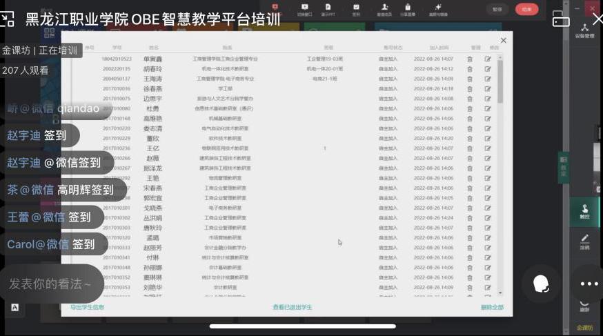 8月26日,为落实推动现代职业教育高质量发展的要求,巩固和深化学校成果导向教育(OBE)改革做法,进一步落实成果导向OBE3.0学习成效评价改革方案,教务处组织全体教师采用线上、线下相结合的方式开展智慧教室、金课坊智慧教学平台系统升级版、OBE成果导向智慧教学系统的操作培训。