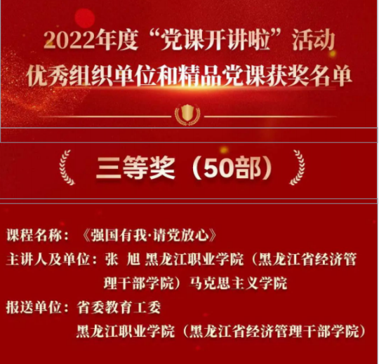 学校党委将继续深入学习贯彻党的二十大精神,持续巩固拓展党史学习教育成果,进一步发挥“党课开讲啦”活动载体作用,不断优化党课内容、丰富党课形式、创新党课载体,推动学校党员教育工作提质增效,实现党员干部能力素质全面提升,促进基层党建工作全面进步、全面过硬,为学校高质量发展和龙江全面振兴全方位振兴提供坚强政治保障。