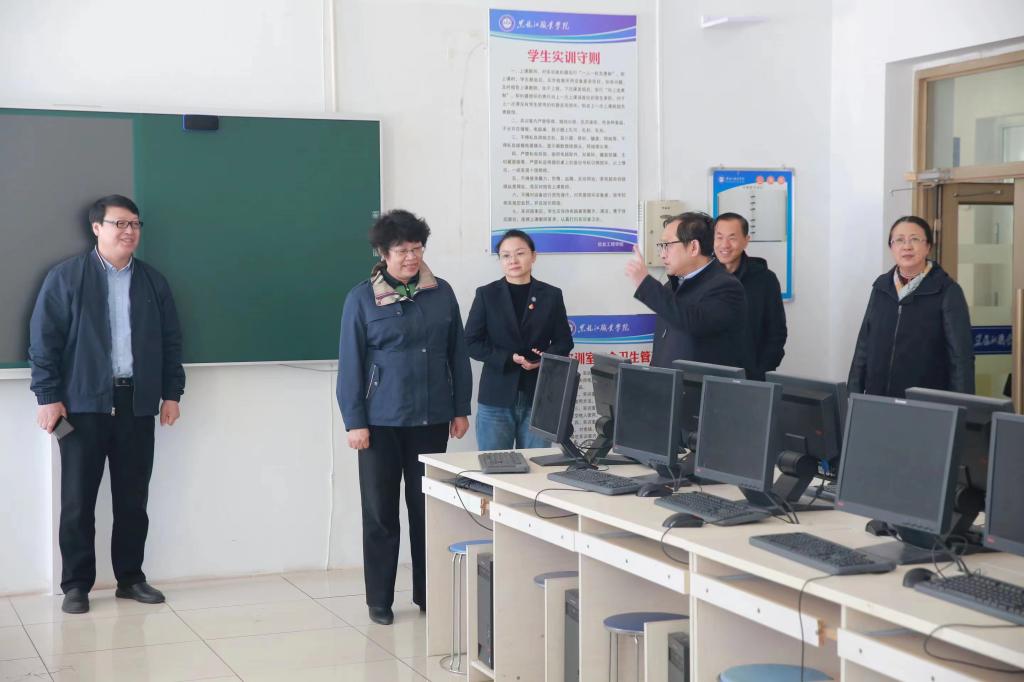 ▲校领导参观信息工程学院实训室