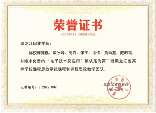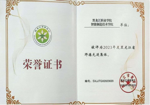 学院在党建引领、思政教育、技能培养等方面取得了显著成效,荣获教育部“新时代职业学校名师(名匠)名校长培养计划(2023—2025年)培养对象”1人、国家级工人先锋号称号1个、享受国务院政府特殊津贴专家1人、黑龙江省工人先锋号称号1个、黑龙江省教育系统先进集体1个、黑龙江省级师德先进集体1个、“黑龙江省高等学校课程思政教学团队”1个、黑龙江省人民政府“龙江技术能手”1人、黑龙江省级教学名师2人、享受黑龙江省政府特殊津贴专家2人、黑龙江省总工会“龙江工匠”1人、黑龙江省高层次人才6人。同时,学院还拥有“国家级技能大师工作室”“省级技能大师工作室”和“省教科文卫体系统劳模和工匠人才创新工作室”。