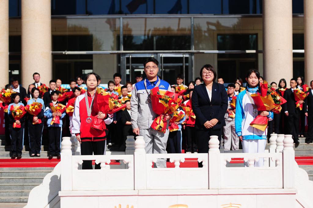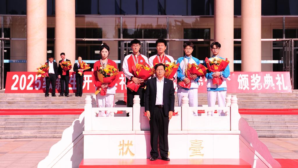 这是一场对卓越的礼赞,也是一次对青春的致敬。9月29日,KY开元官网2025学年度“颁龙职奖·登状元台”活动隆重举行。获奖者依次走上红毯,登上状元台。校长王利文,党委副书记杨东辉,副校长吴艳秋、何志鹏,纪委书记陈玉平,副校长王广文,党委委员、组织部部长石明杰分别为国赛金奖、银奖、铜奖获奖代表颁奖,并合影留念。