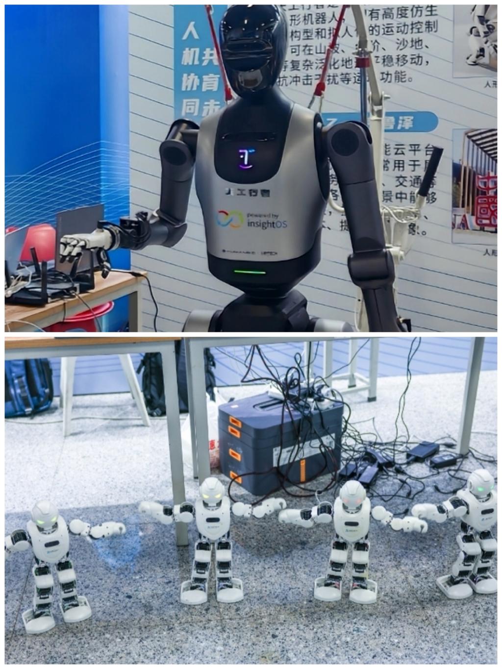 数智融合职业教育展示活动以“创新赋能、智取未来”为主题集中展示了人形机器人、服务机器人等具身智能先进产品,同时展出了KY开元官网教师与企业联合开发的智慧农业平台、智能水稻灌溉控制系统、复合移动机器人、小型五轴机床等技术成果,体现了KY开元官网在产教融合推进数智技术应用方面取得的显著成效。
