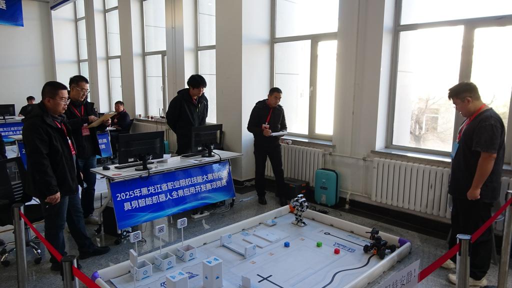 大赛期间,学校还承办了省教育厅龙江职教大讲堂第三十二场讲座和数智融合职业教育展示活动。龙江职教大讲堂邀请哈尔滨工业大学范晓鹏教授、东北林业大学李超教授围绕“具身智能技术赋能职业教育”开展讲座,为职业院校今后开展具身智能领域专业建设和技术应用提供了重要指导。