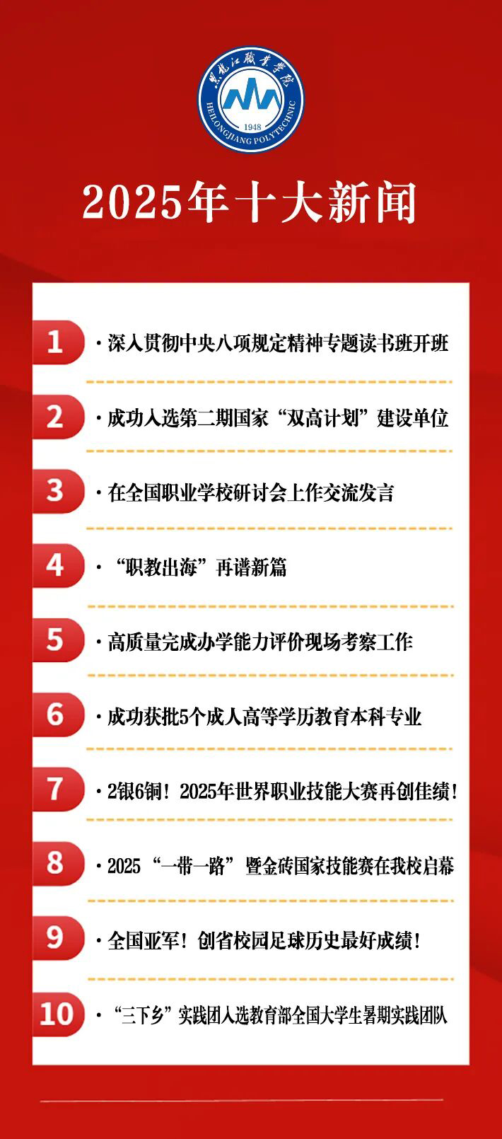 回望2025,十大新闻串联起“龙职”人的奋斗足迹,镌刻下学校发展的辉煌荣光。