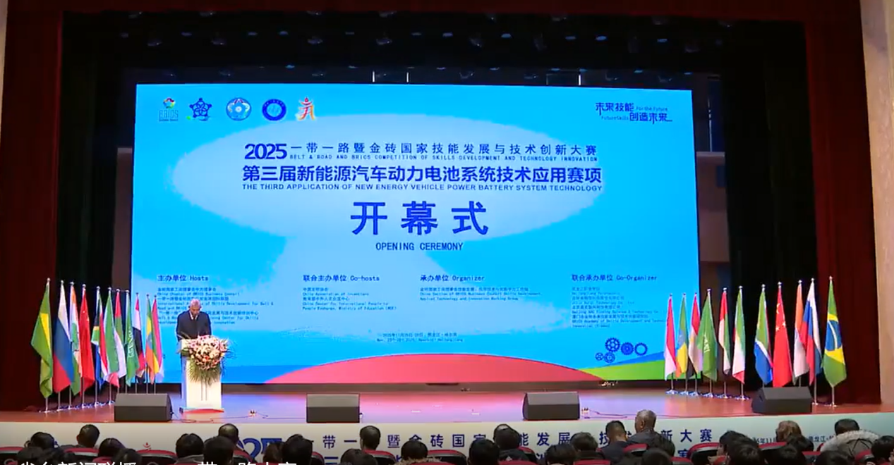 11月25日,2025“一带一路”暨金砖国家技能发展与技术创新大赛第三届新能源汽车动力电池系统技术应用赛项决赛在学校盛大启幕。来自全国16个省份、43所院校的65支参赛队伍在为期两天的赛事中同台竞技、切磋技艺,展开高水平角逐。大赛全面考察选手在动力电池系统装调、检测、维护、故障诊断及安全管理等方面的综合技术应用能力与创新能力。本届大赛汇聚行业智慧、链接优质资源,为新能源汽车产业注入强劲动能,为技能人才培养与产教融合深化搭建更高水平的交流合作平台。