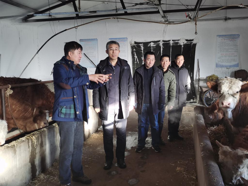 在富强村两委干部和学校驻村工作队队员的陪同下,王利文等学校领导深入到肉牛养殖场,实地察看了牛舍、仓储料棚、牛场办公及宿舍,听取了学校驻村扶贫工作队队长王刚同志的汇报,对下步巩固脱贫攻坚成果和推进乡村振兴工作,提出了新的工作要求和建议,为牛场可持续发展指明了前进方向。