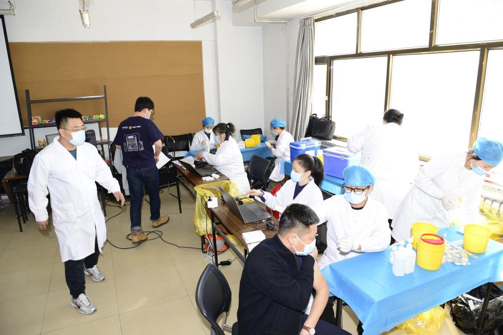 4月8日,在学校党委的积极组织部署下,在后勤服务中心的辛苦努力下,全校师生开始接种疫苗。