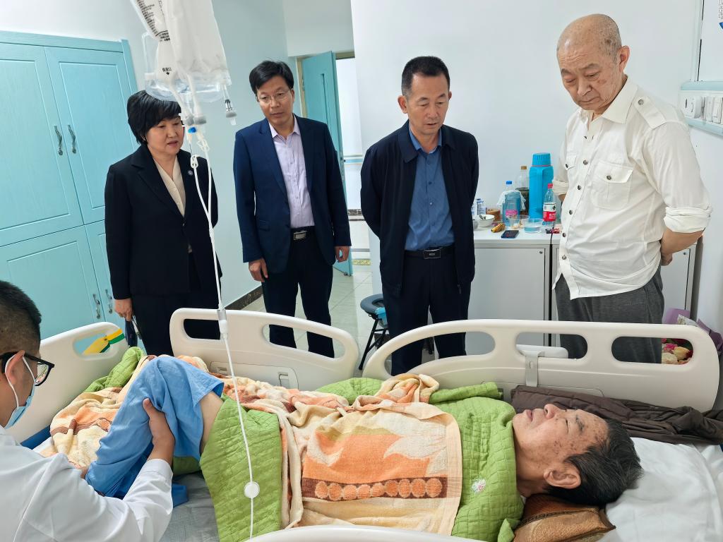 9月27日,周家郁带队到哈尔滨中医药大学附属第一医院看望慰问因病住院的离休老干部王传洞,送上慰问品和慰问金。周家郁详细了解了王传洞身体情况和恢复情况,并叮嘱家属要精心照顾好王老的生活起居,时刻关注他的身体状况,希望他早日康复。王传洞及家属对组织的关心、慰问和牵挂表示由衷感谢,表示会积极治疗,争取尽快康复。