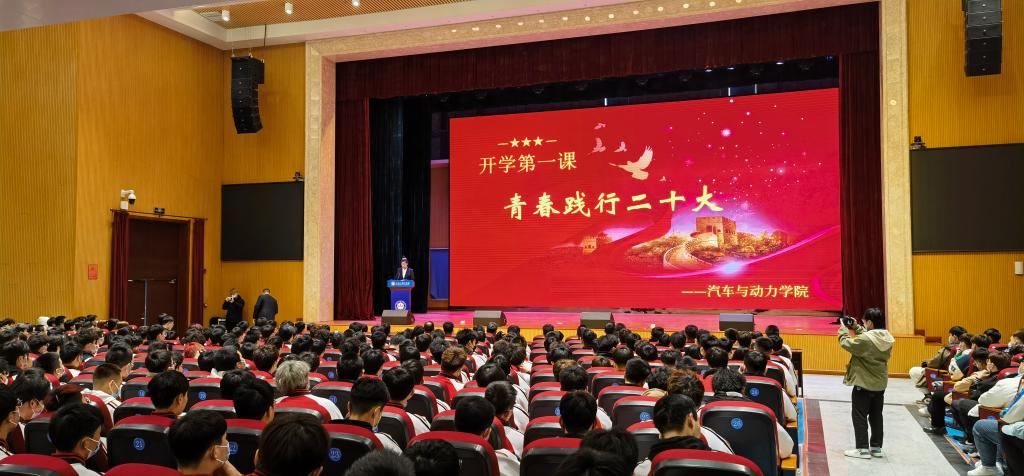 ▲汽车与动力学院开展“开学第一课”主题教育班会
