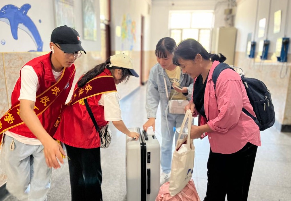 ▲公寓辅导员和学生志愿者为2023级新生办理入住