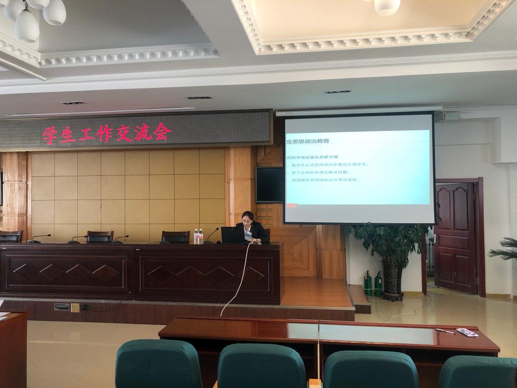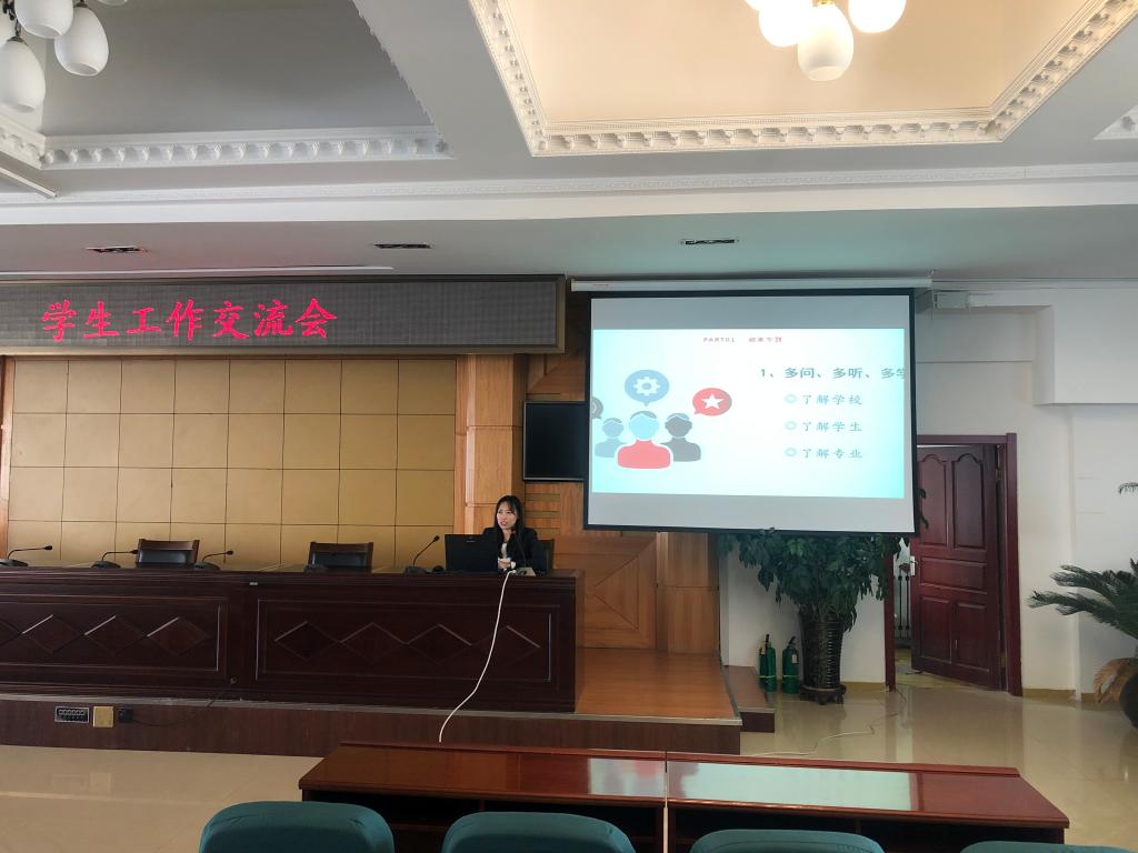 两校区共11名辅导员进行了精彩的工作交流和经验分享。机械工程学院尚天任讲述了对争做“四有好老师”的理解,通过案例分享做好班级管理和加强自身建设方面的心得体会。电气工程学院刘东航分享了开展“赏识教育”心得体会,用“充满人情味、富有生命力”的教育让学生发现并发扬优点和长处。建筑工程学院张苏阐述了了解学生、熟悉学生、服务学生的工作理念,并举例分享了自己在实际工作中的成功做法。工商管理学院李岱泓再现了做好“大姐姐”、扮好“大管家”、演好“领头雁”、当好“工匠人”的一幕幕感人画面。会计金融学院王双琪分享了因材施教、无障碍沟通、狠抓学风建设的成功做法。旅游与人文艺术学院李京结合“对待学生要严爱慈心、对待工作要找准重心、对待问题要多多留心”的“三心”角度分享自己的做法和体会。农牧工程学院宓宪伟分享了通过强化班级教育管理,带领学生在“创新创业”工作上取得的成绩心得体会。食品药品学院蒋雨晴分享了参加全省骨干辅导员培训的心得体会。公寓辅导员卢丙洋和史召楠分别从“高校辅导员素质能力大赛”和“学生公寓的管理服务”这两个角度分享了参赛体会、取得的成绩和身边发生的故事。