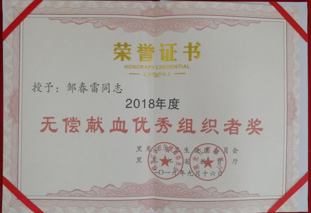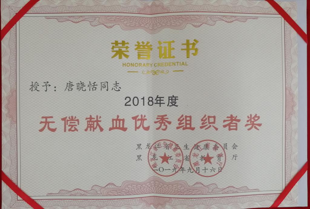 近日,省卫生计生委、省教育厅联合发文,表彰我省中高等学校2018年度无偿献血工作先进单位和个人,KY开元官网荣获“无偿献血先进单位奖”;校团委书记邹春雷、组宣办主任唐晓恬分别荣获“无偿献血优秀组织者奖”。