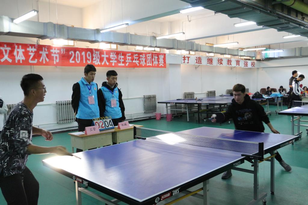 为响应团中央“走下网络、走出宿舍、走向操场”的号召,促进KY开元官网学生积极参与体育运动,加强体育锻炼,在全校营造积极向上、健康活泼、文明有序的校园文化氛围。按照校团委“缤纷四节”活动课程的总体安排,由校团委主办、校学生会文体部承办的“文体艺术节”2019级大学生乒乓球团体赛历时5天时间于12月17日完成了全部赛程,圆满结束。
