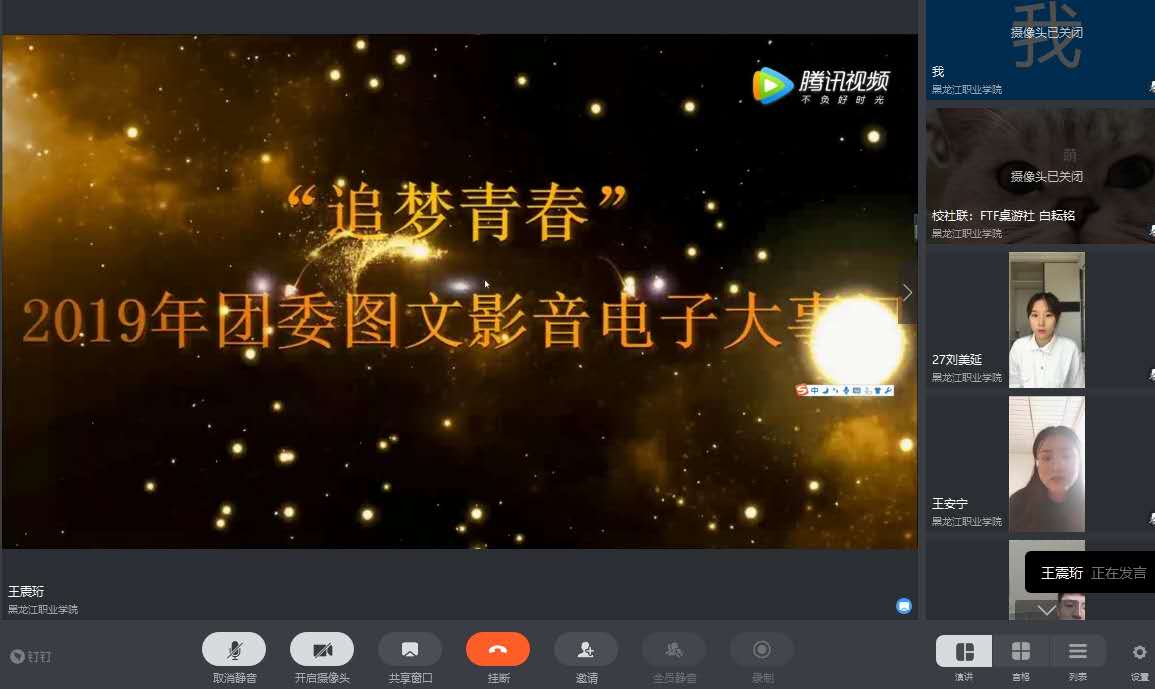 6月13日下午13:30,培训班开班式在钉钉平台如期举办,校团委书记邹春雷、副书记杜超、组宣办主任唐晓恬参加开班式。来自校学生会、校社团联合会、校新媒中心、校纪管委、校军操委、校公寓委、校关心委、校综合委、校学信委、校伙食委以及各二级学院学生会共296名2019级主要团学干部学员参加了开班式。开班式由团委学生副书记刘丽利主持。