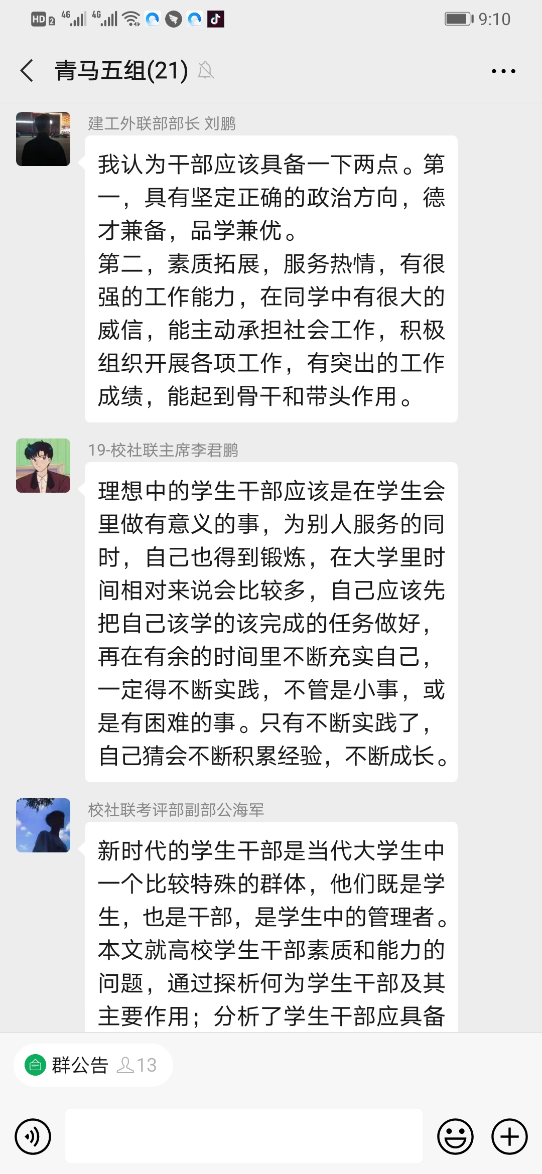 在小组讨论环节,同学们就“你心目中的学生干部是怎么样的?你认为当一名合格的学生干部应具备哪些能力和素质?。”展开充分的讨论。同学们纷纷表示学生干部应品行优良,遇事冷静,恰当处理。以身作则,不计个人得失且对工作要有责任心!