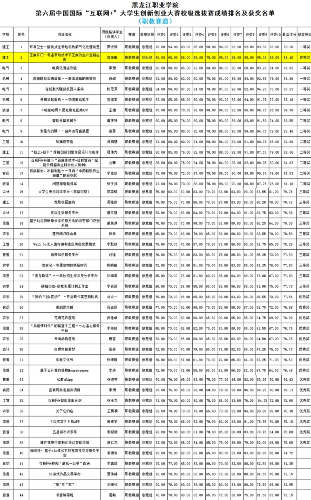 黑龙江省民营经济发展促进会常务秘书长、黑龙江省东北民营经济研究院副院长秦光齐;黑龙江路同创业投资集团股份有限公司总经理、黑龙江元创谷科技企业孵化器有限公司创始人贺丽娟;猪八戒网黑龙江省总经理、哈尔滨梦工场孵化器总经理、教育部创新创业导师关志伟;黑龙江省天琪投资管理有限公司投资总监邹平;黑龙江大学创业教育学院教研室主任、国家级双创导师李海东;大庆师范学院创新创业导师李浩源;黑龙江建筑职业技术学院教务处副处长孙万里;哈尔滨铁道职业技术学院团委书记王佳音;黑龙江生物科技职业技术学院创业教育中心主任邵洪侠;哈尔滨职业技术学院创新创业专任教师、创新创业导师陈晨共十位老师构成大赛专家评委团。