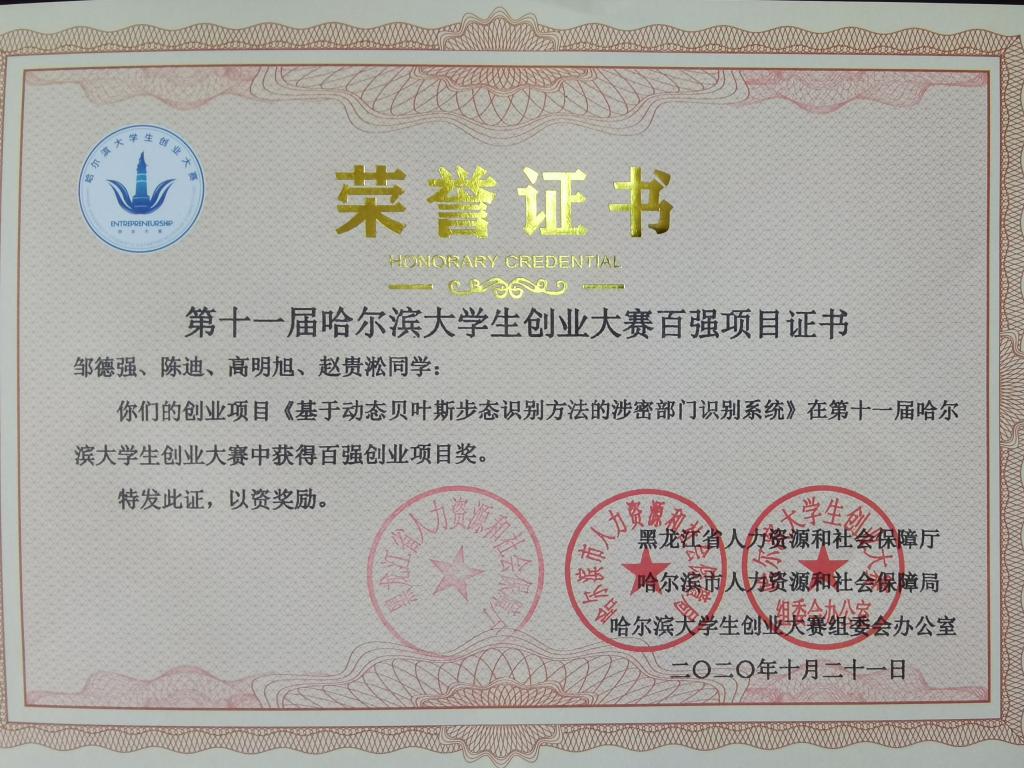 10月21日,以“创客当下,赢在未来”为主题,由黑龙江省人力资源和社会保障厅、哈尔滨市人力资源和社会保障局联合主办,哈尔滨市人才服务局承办的第十一届哈尔滨大学生创业大赛决赛圆满落幕。KY开元官网与哈尔滨工业大学、黑龙江大学、东北农业大学、东北石油大学、哈尔滨理工大学、黑龙江中医药大学等20所高校获得了大赛“优秀组织奖单位”。KY开元官网《芝麻开门——低温萃取技术下芝麻的全产为链应用》《基于改进型Adaboost算法的航载无人机水稻产量预测系统》《基于动态叶贝斯步态识别方法的涉密部门识别系统》三个创业项目荣获大赛“百强创业项目奖”称号。