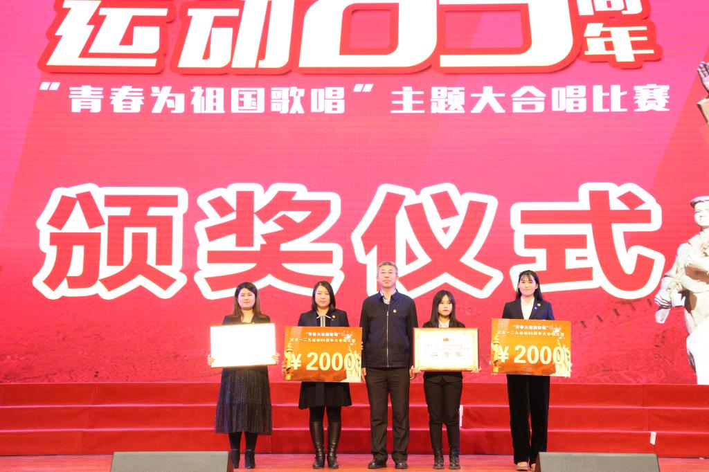 经过激烈角逐,工商管理学院合唱团荣获本次大赛“团体一等奖”,电气工程学院合唱团和会计金融学院合唱团分别荣获大赛“团体二等奖”,机械工程学院合唱团、建筑工程学院合唱团和旅游与人文艺术学院合唱团分别荣获大赛“团体三等奖”,工商管理学院合唱团学生指挥周薇获得大赛个人“最佳指挥奖”,校领导为获奖单位颁发了荣誉奖牌和奖金。