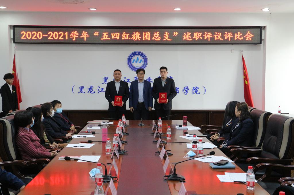 4月29日,2020-2021学年“五四红旗团总支”述职评议评比会顺利举行。校党委副书记周家郁、学工部部长石明杰出席会议。党委组织部副部长刘璇,纪检监察审计处副处长李青春,学工部(团委)直属党支部负责人王英侠,学生处副处长陈宇辉,校团委书记、学工部副部长邹春雷,教务处副处长李立,教学质量监控中心副主任高金华等有关部门负责人作为评审嘉宾应邀参会。会议由校团委副书记杜超主持。