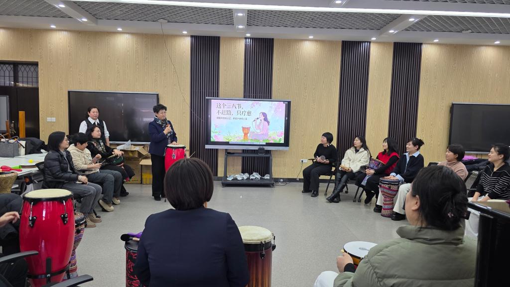 为缓解女教职工工作压力,呵护身心健康,学校工会组织女教职工代表开展“不赶路 只疗愈”鼓圈文化沙龙活动,学校党委书记崔治春、党委副书记杨东辉出席活动。在现场,没有复杂的规则、没有沉重的说教,女教职工们围圈而坐,通过即兴敲击鼓点,释放情绪、传递心声。活动最后,崔治春代表学校党委,希望女教职工在工作和生活中坚持学习(Study)、热爱运动(Sport)、灿烂微笑(Smile),让女教职工们切实感受到组织的贴心关怀。